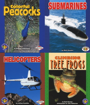 What I love about these books is the natural language that is used and the depth of information that is provided. In an effort to be readable, other non-fiction books aimed at the pre-K to 1st grade group are often so concise as to wind up being superficial. The animal books in Lerner’s Pull Ahead series explore concepts in greater depth. In Climbing Tree Frogs, for example, 8 sentences are devoted to the function of the animal’s feet and 7 sentences explain how their changing coloration is a helpful adaptation.