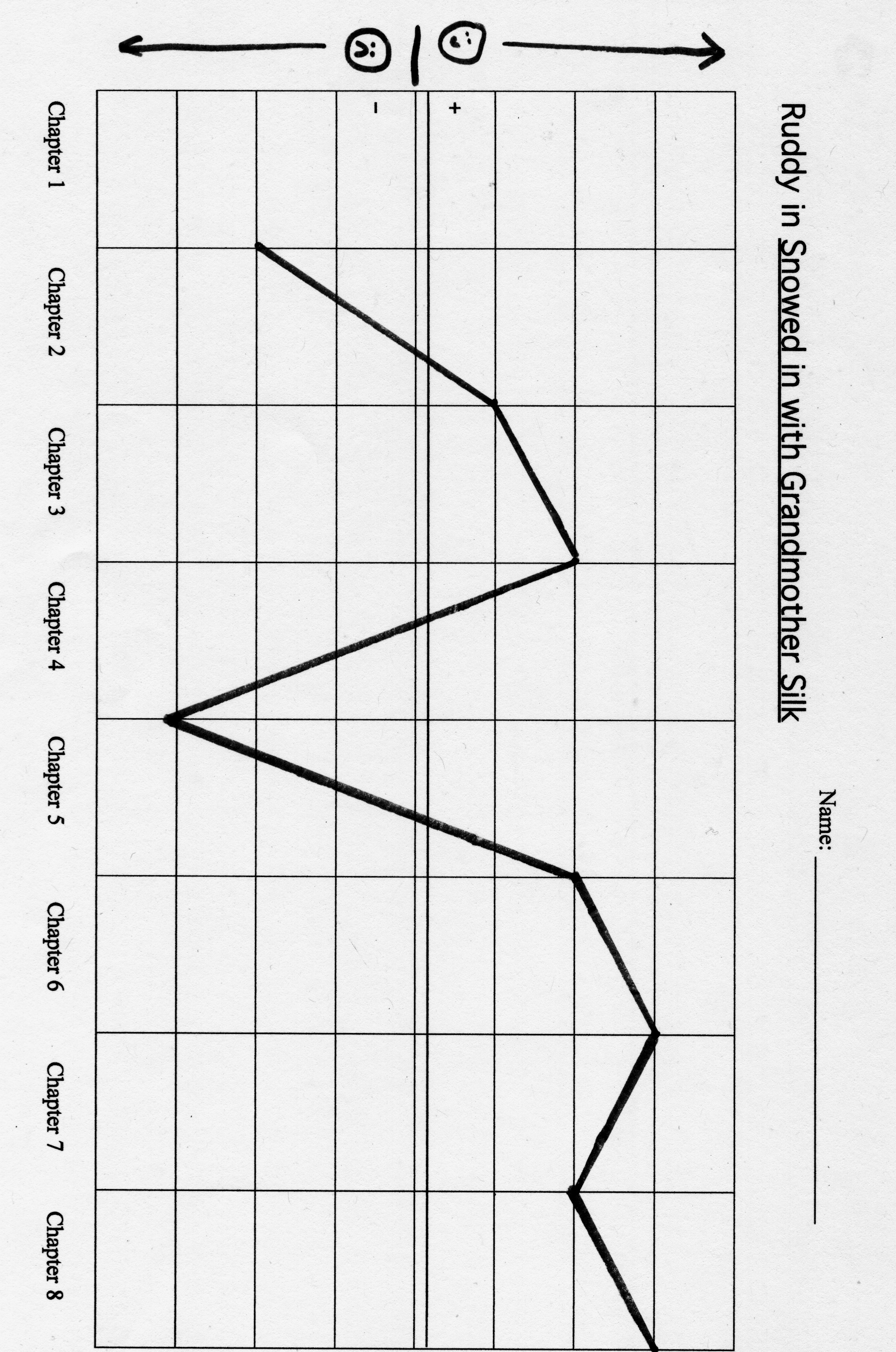 The third person narration which is Ruddy’s point of view makes this story an opportune one for tracking the change in his feelings about his stay with Grandmother Silk. I’ve had third graders note separate instances of Ruddy’s feeling “happy” and “unhappy” about his predicament and then plot a point for each chapter on a character’s emotions graph. In talking to each other about the similarities and differences in their graphs, students use details from the text to substantiate their thinking.