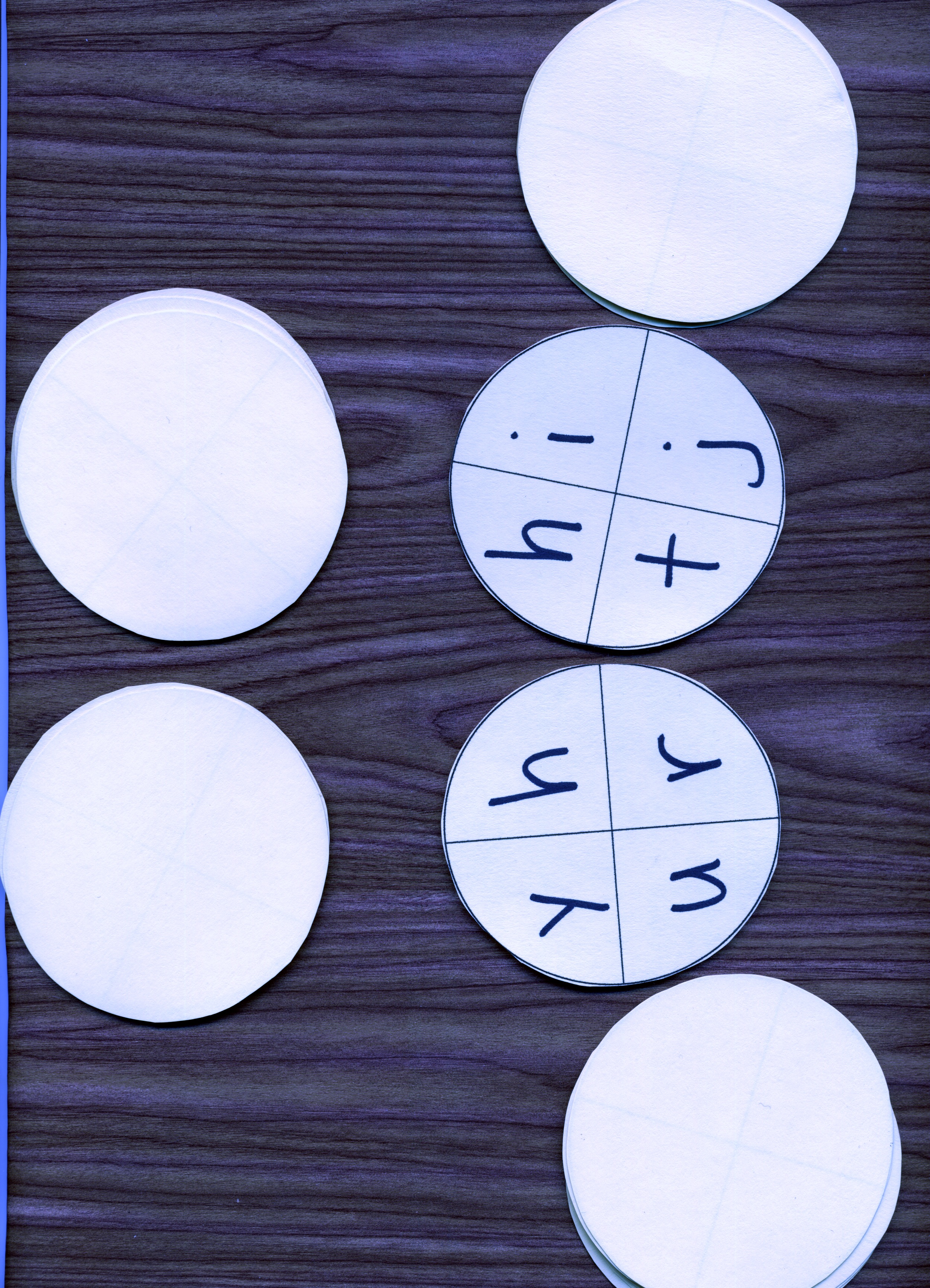 I’m sure there is a mathematical formula for determining optimal combinations of letters so that a match will be found in three flips on average. I have no idea what that is. Using trial and error, I’ve come up with cards which make the game interesting–where a match is found often enough, but not on every turn. Of course, if there are particular differences you’re trying to highlight, such as between b’s and d’s, t’s and f’s, n’s and u’s etc., you’ll have to tailor the letter combinations.